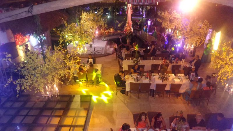 O nosso empreendimento possui: salão de convenções, temos quatro tipos de ambientes: o salão térreo, o salão superior, área de piscina e área de praia.
